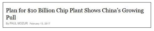 “美國幾乎所有大型半導(dǎo)體企業(yè)都收到過中國代表政府機(jī)構(gòu)的主體發(fā)出的投資要約,”總部設(shè)在德國的智庫墨卡托中國研究中心(Mercator Institute for China Studies)發(fā)布的一份報(bào)告稱。該報(bào)告還接著表示,中國最新的工業(yè)政策《中國制造2025》將半導(dǎo)體列為了需要提升的關(guān)鍵領(lǐng)域。