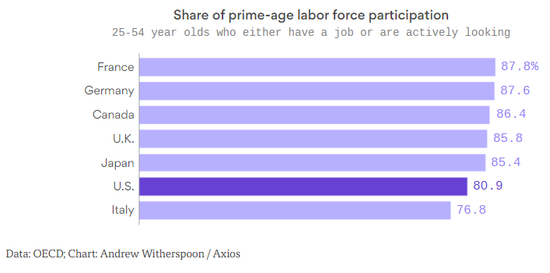 薩默斯稱,如果這種趨勢延續,到2050年,25-54歲的美國人將有三分之一不參加工作。